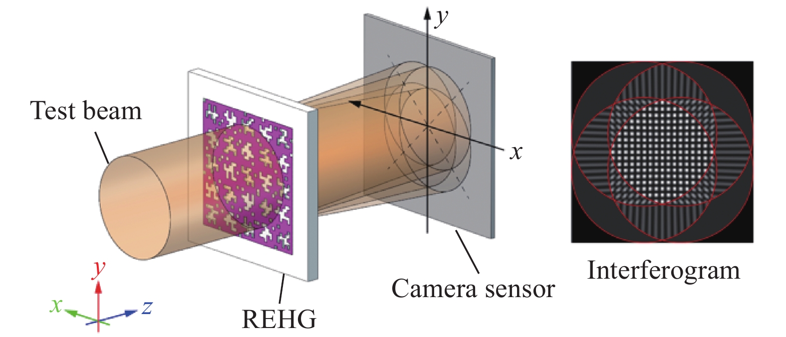 Fig.1. Princípio de imagem da fase com base na interferência de cisalhamento lateral de quatro ondas usando grade híbrida de codificação aleatória (REHG)